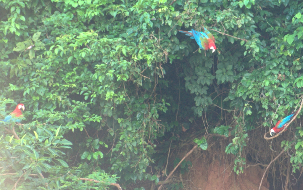 Macaws on the banks of the Tambopata