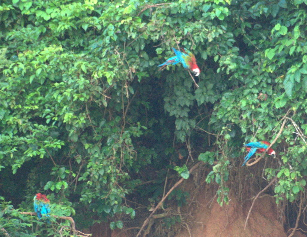 Macaws on the banks of the Tambopata