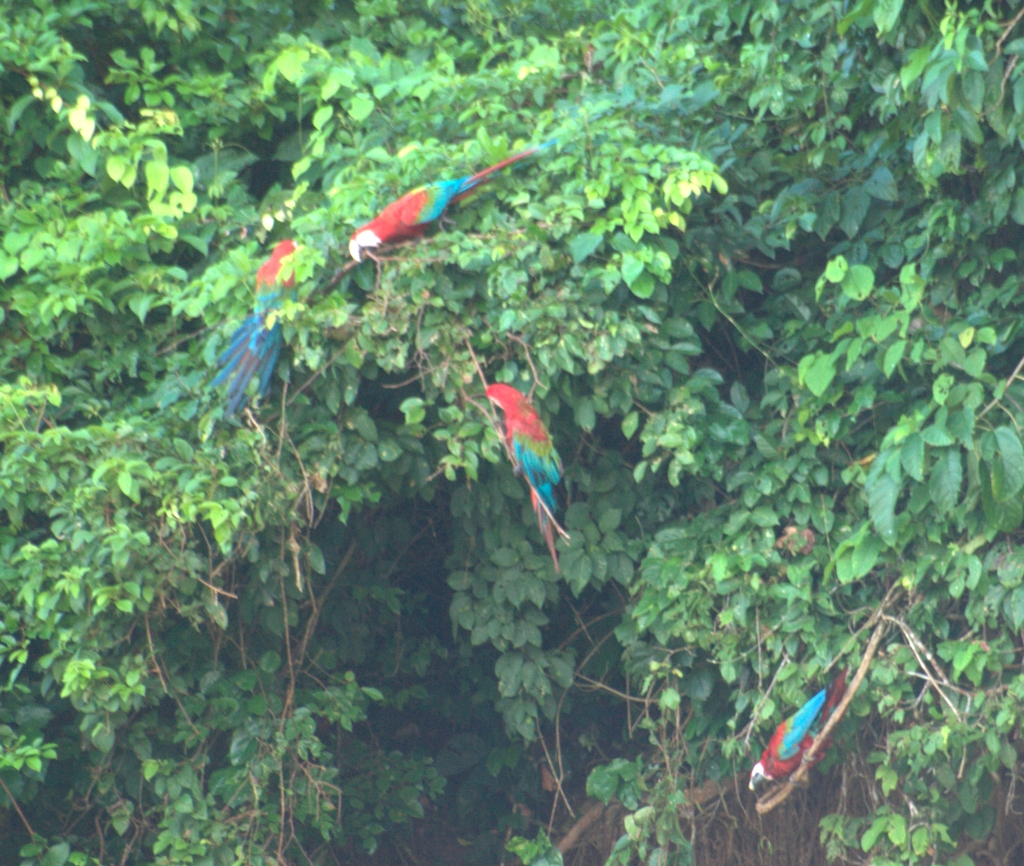Macaws on the banks of the Tambopata