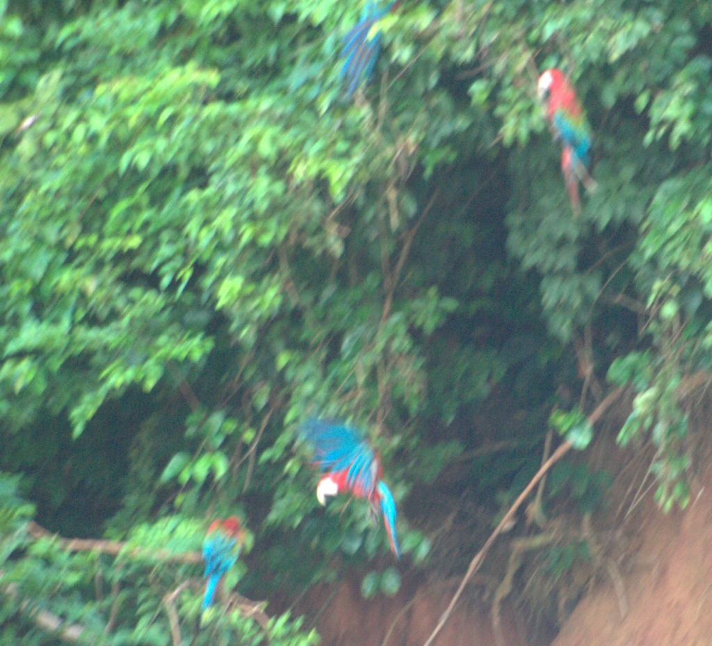 Macaws on the banks of the Tambopata