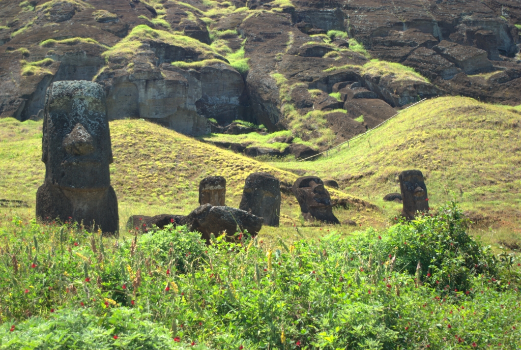 Moai litter the landscape at Rano Raraku