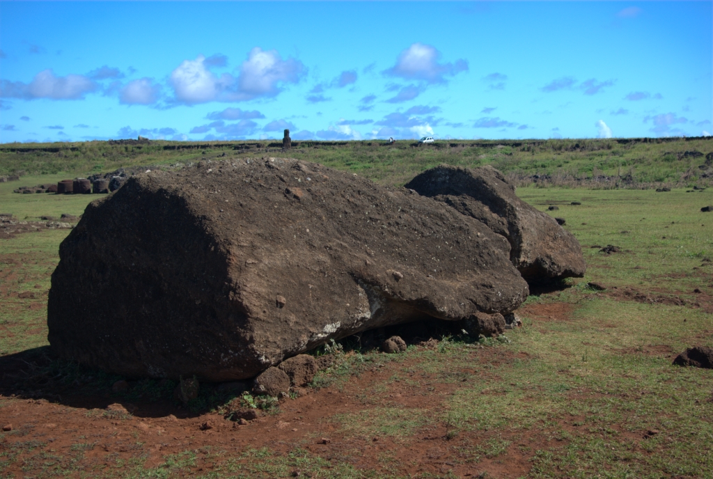 Giant fallen moai at Ahu Hanga Tetenga
