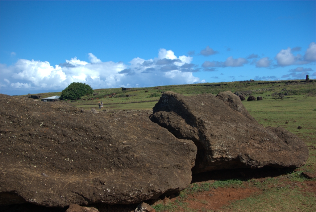 Giant fallen moai at Ahu Hanga Tetenga