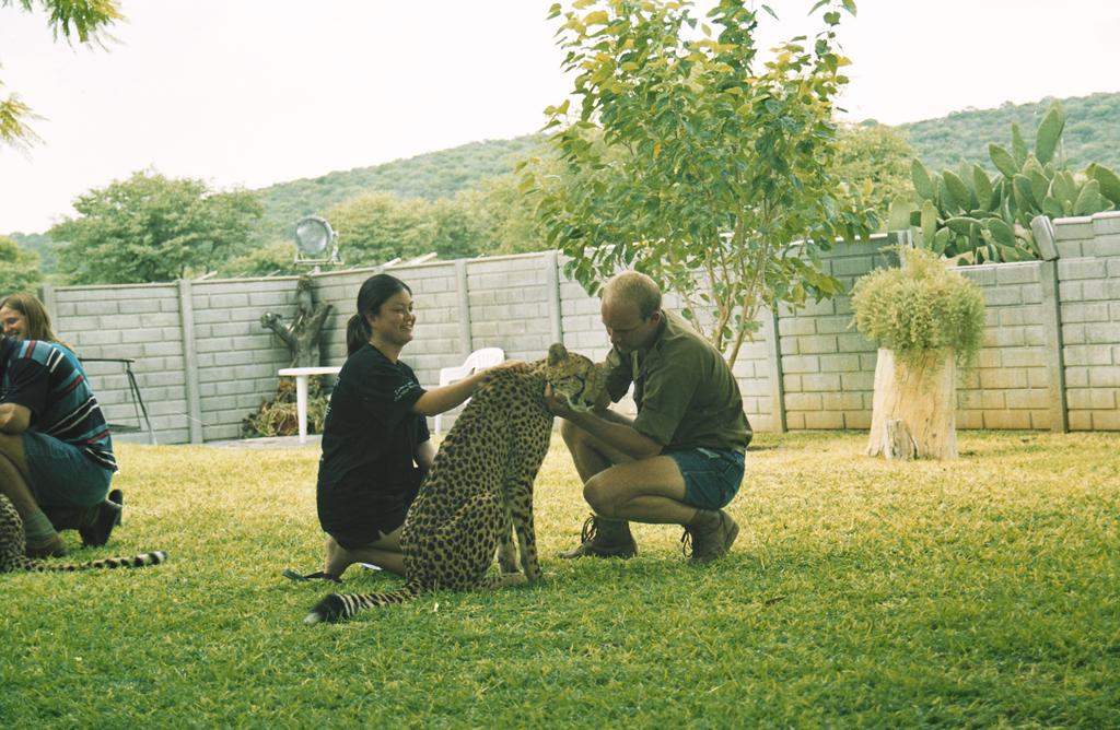Catherine with the cheetas at the cheetah park, Namibia.