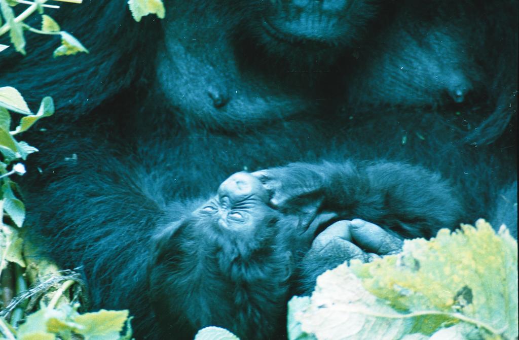 Mother and 5 week old baby - Parc des Volcans, Rwanda