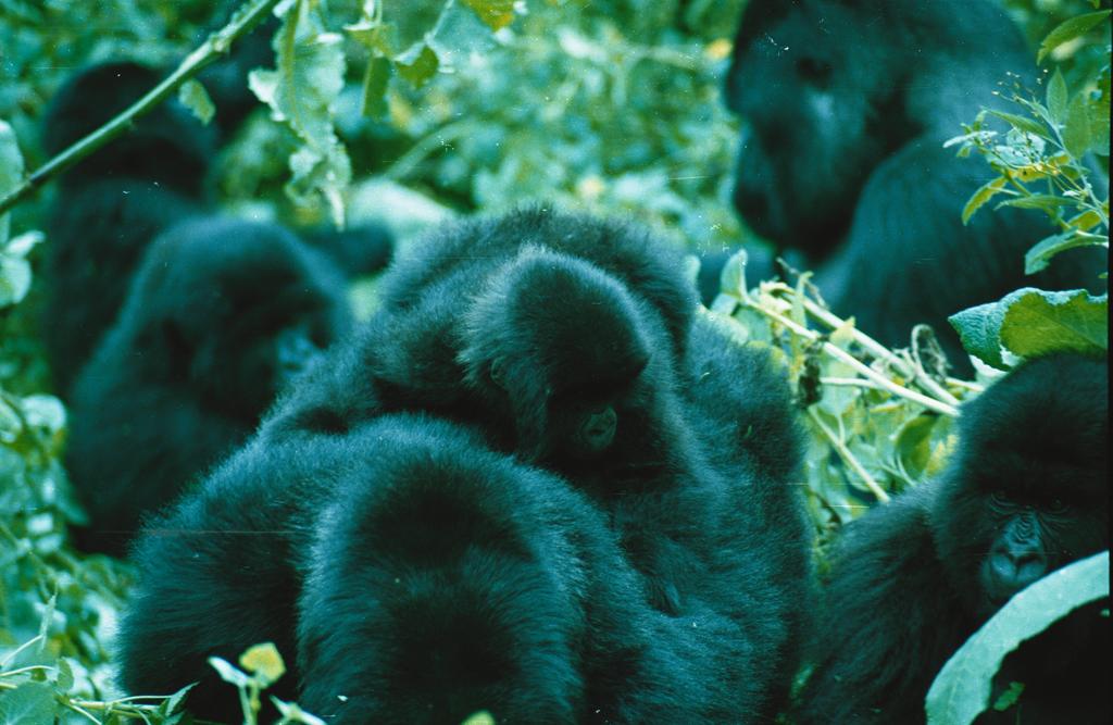 Baby rides on mother's back - Parc des Volcans, Rwanda