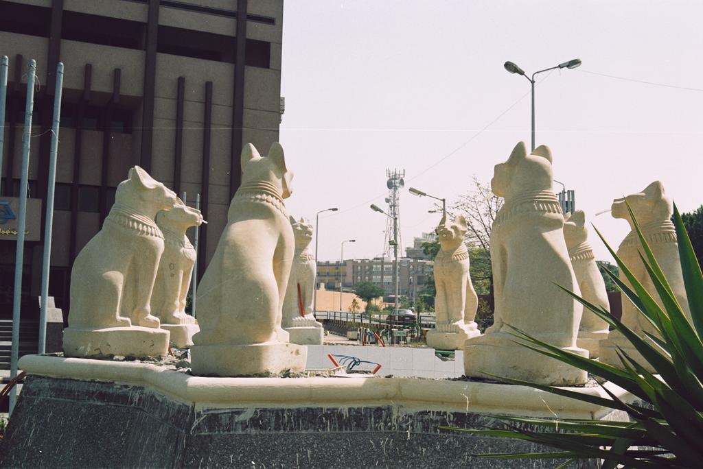 Stone cats smoking cigarettes -- Luxor