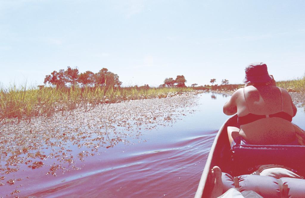 The view from the boat of the sea of reeds and lilies that is the Okavango
