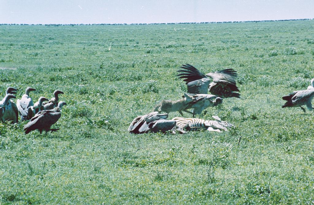 Jackel and vultures contend for a dead zebra - Serengeti NP, Tanzania