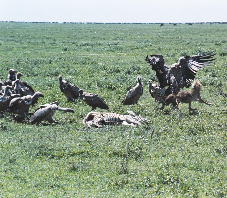 Jackel vs vulture - Serengeti NP, Tanzania