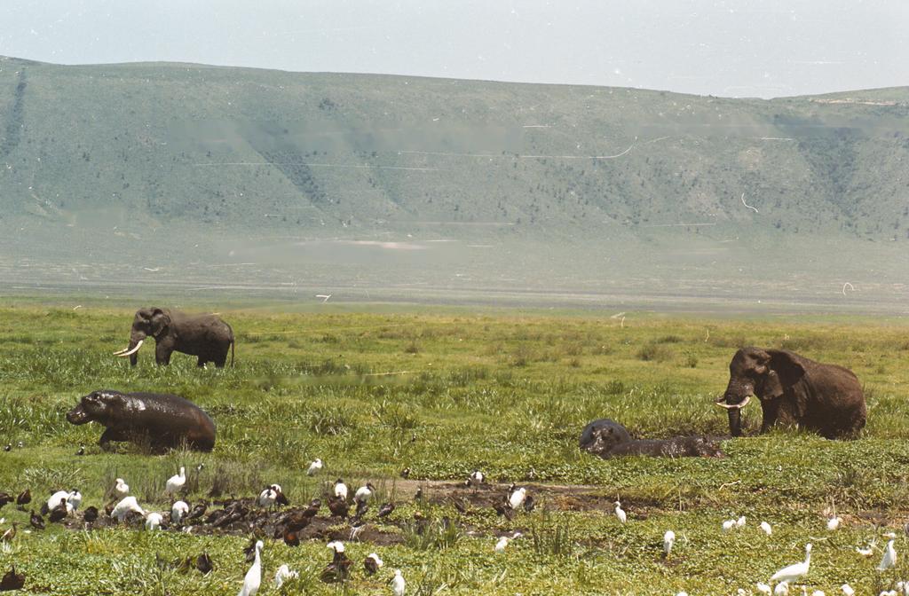 Hippo vs Elephant - Ngorongoro Crater, Tanzania