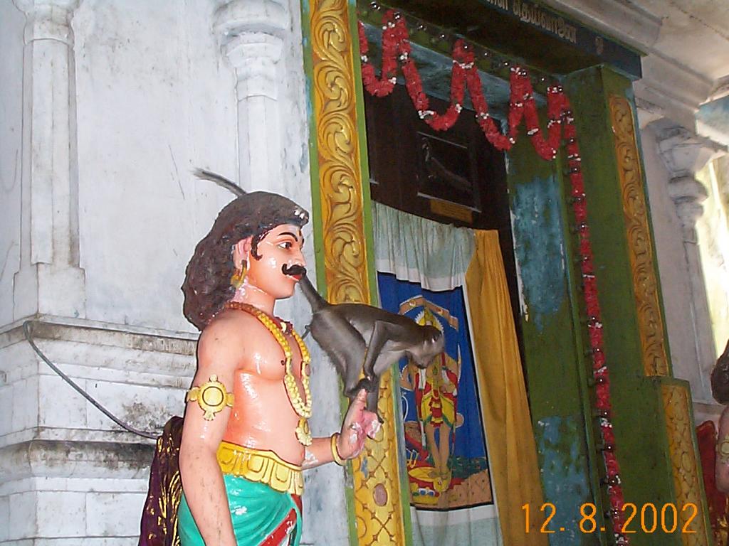 Long Tail Macaque playing on statuary at the Hindu temple inside the Batu Caves