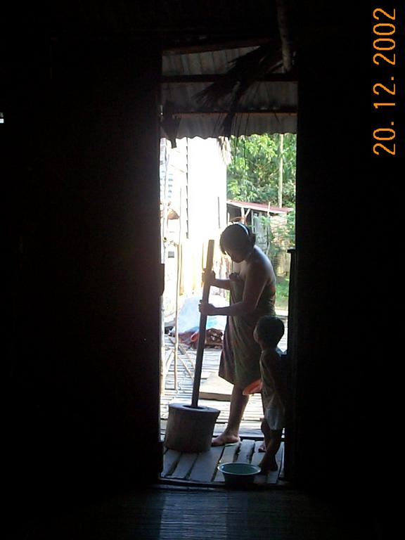Iban women crushing grain