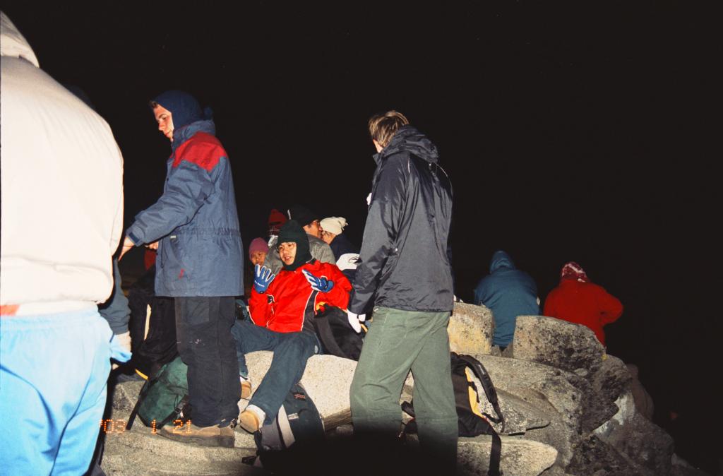 The top of Gunung Kinabalu is a small pile of rubble crowded with people