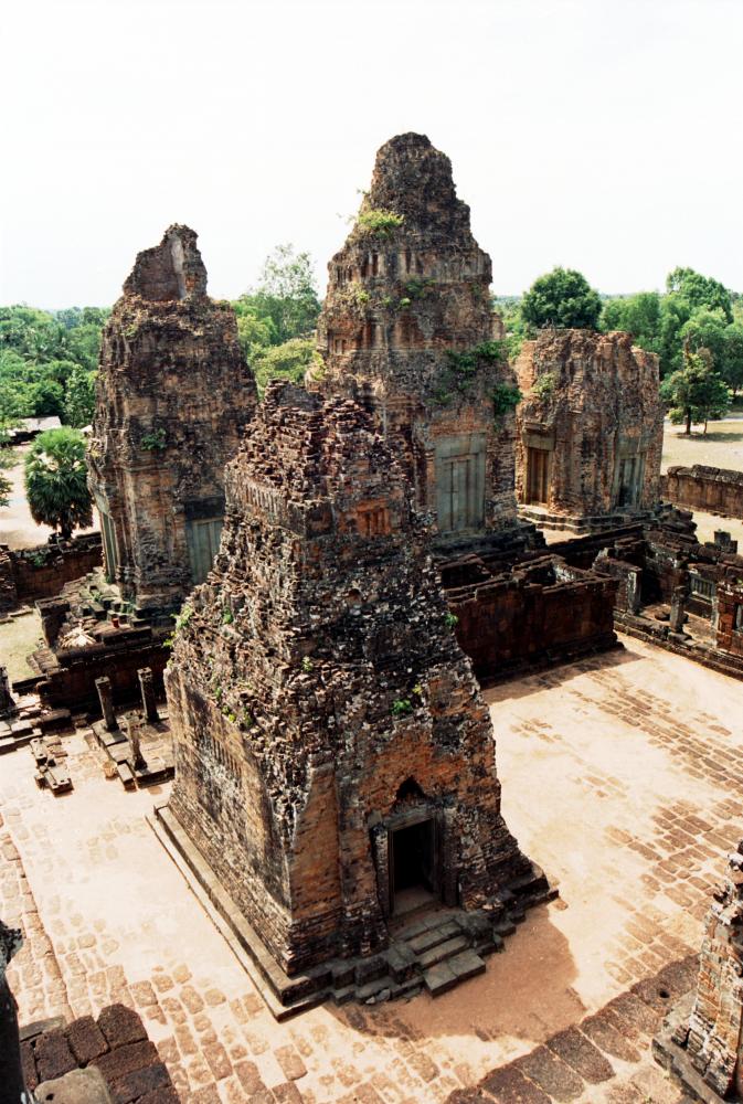 Looking down on the upper level towers at Pre Rup