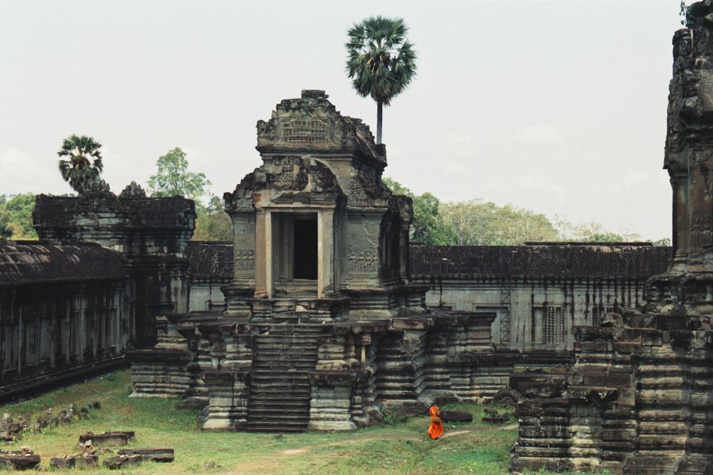 Buddhist monk approaches a "library" -- Angkor Wat, Angkor, Cambodia