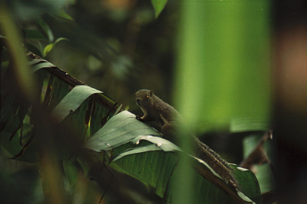 Squirrel on banana plant -- Gunung Kinabalu National Park, Saba