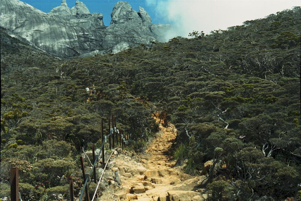 Part way up Gunung Kinabalu, rain forest gives way to alpine splendor