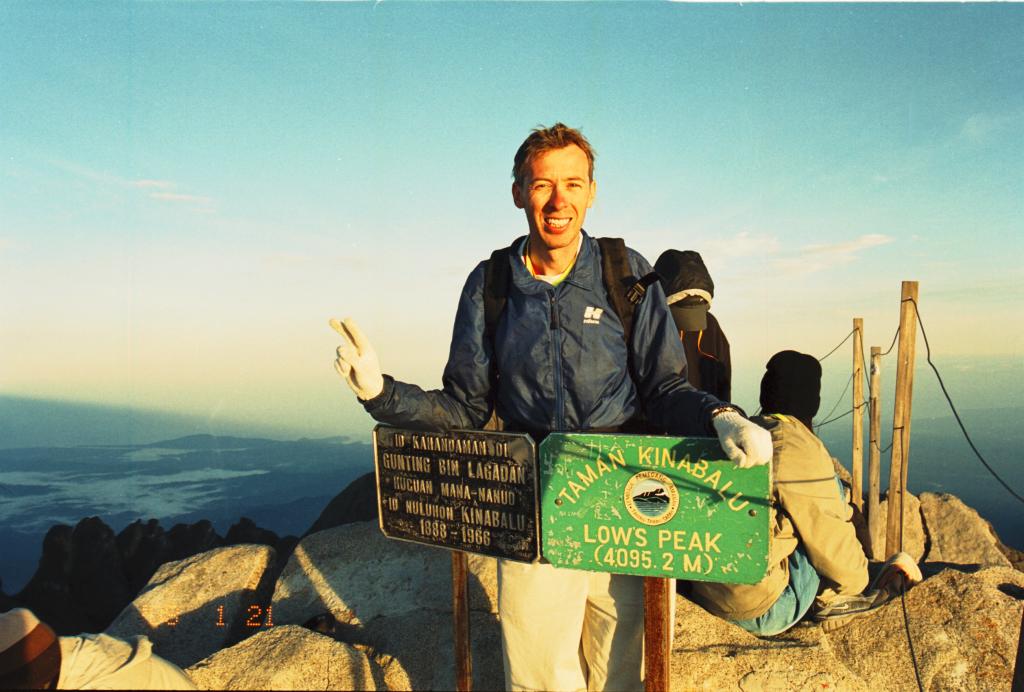 Author at Low's Peak in bizarre mimicry of Asian tourists