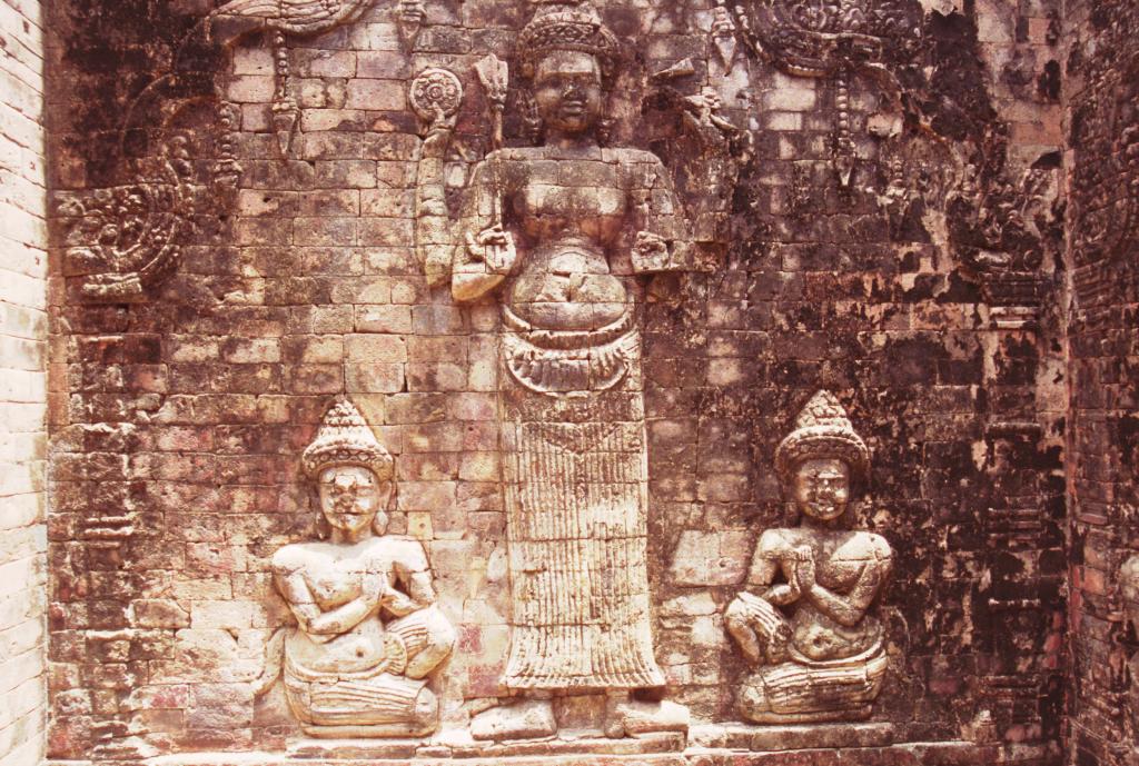 Carved brick reliefs at Prasat Kraven