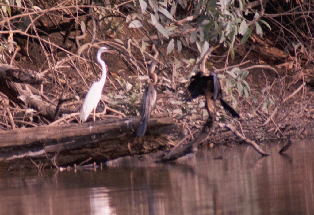 Oriental Darters and egrets on the oxbow lake adjacent to Uncle Tan's Wildlife Camp