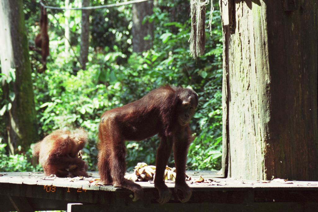 Two orangutans at the feeding platform -- Sepilock, Sabah, Malaysian Borneo