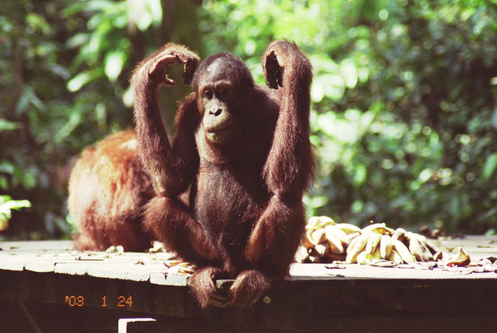 Two Orangutans at the feeding platform -- Sepilock, Sabah, Malaysian Borneo