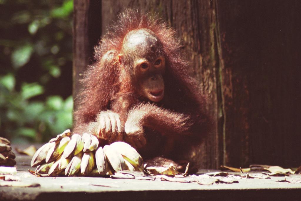 Very young orangutan at the feeding platform -- Sepilock, Sabah, Malaysian Borneo