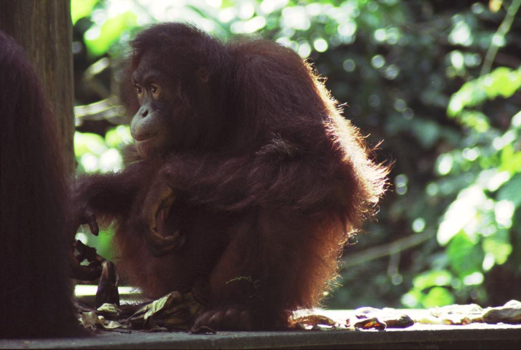 Orangutan at the feeding platform -- Sepilock, Sabah, Malaysian Borneo
