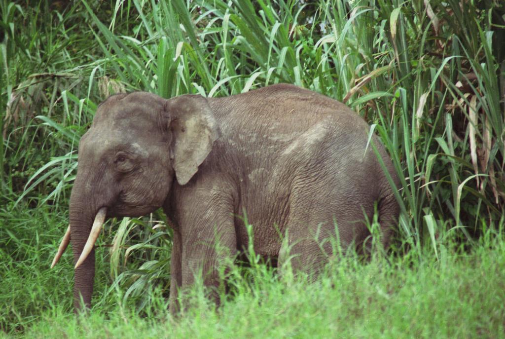 Young and apparently unwell male elephant near plantation -- Kinabatangan River, Uncle Tan's Wildlife Camp