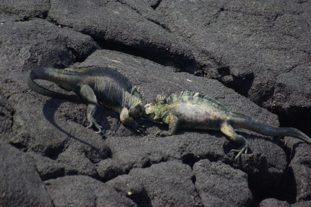 : Marine iguanas fight for supremacy on a Fernandina beach: January 4, 2009