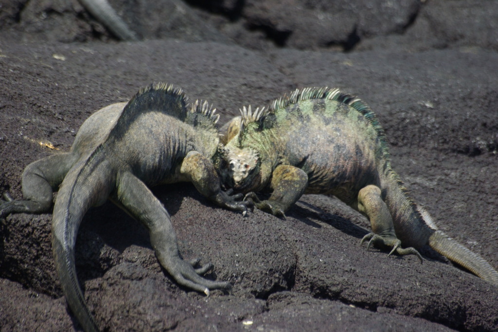 : Marine iguanas fight for supremacy on a Fernandina beach: January 4, 2009
