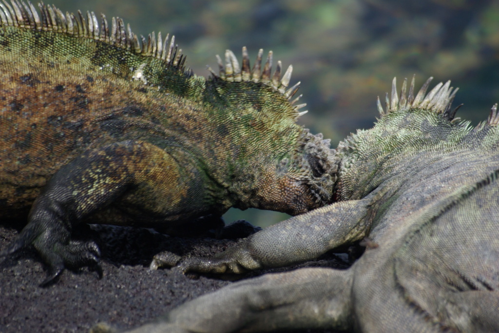 : Marine iguanas fight for supremacy on a Fernandina beach: January 4, 2009