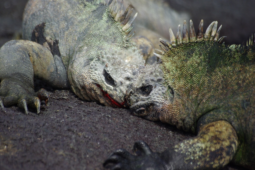 : Marine iguanas fight for supremacy on a Fernandina beach: January 4, 2009