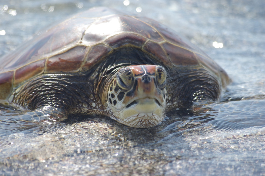 : Migrant turtle and marine iguanas share a Fernandina beach: January 4, 2009