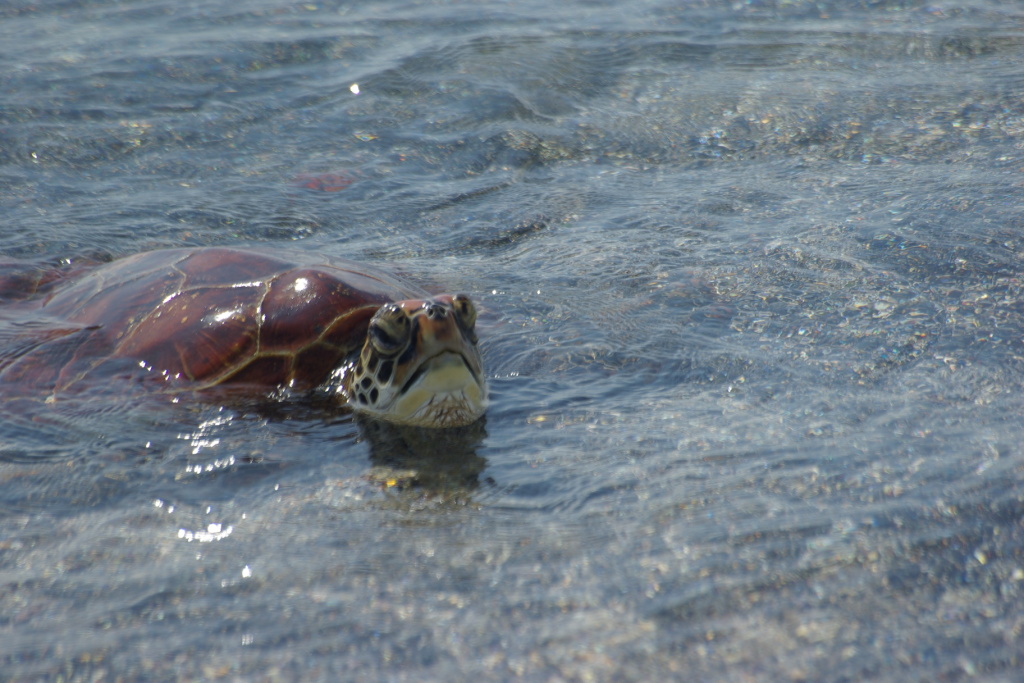 : Migrant turtle and marine iguanas share a Fernandina beach: January 4, 2009