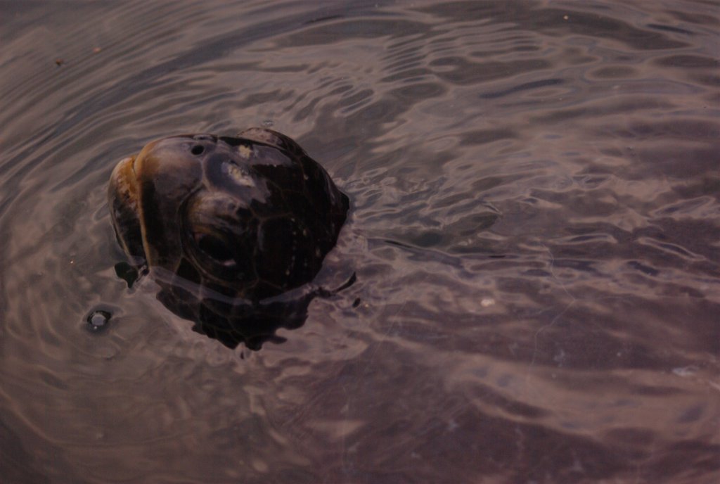 Green sea turtle comes up to breath