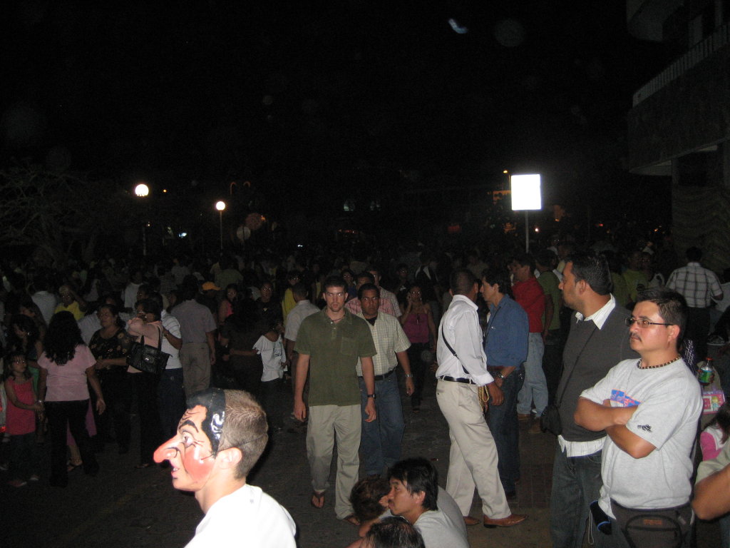 Costumes and painted faces wait for midnight on New Years Eve in Puerto Ayora