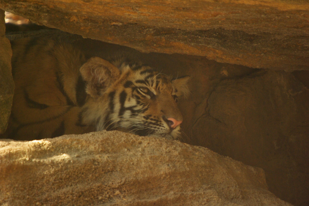Bored looking tiger cub peers out