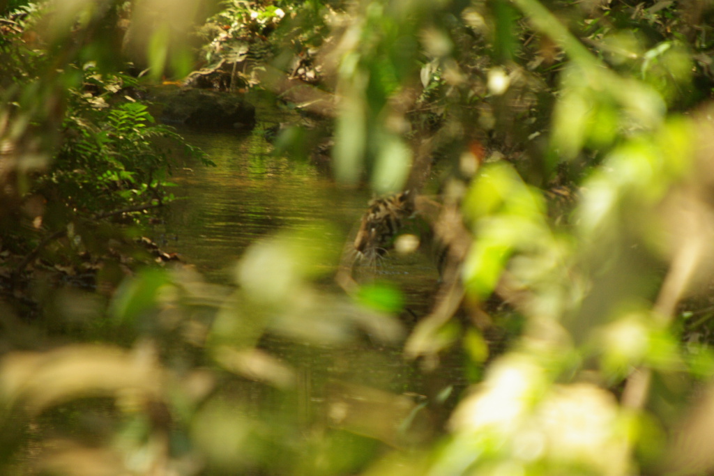 Tiger cub wades through the creek