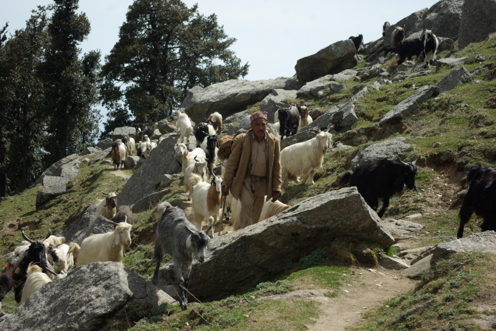 Shepherd and flock on the way back from the Snow Line