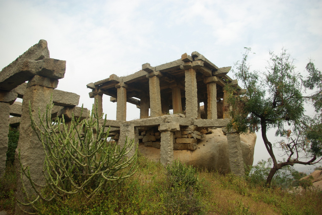 The rocky temple covered hill side of Hemakuta