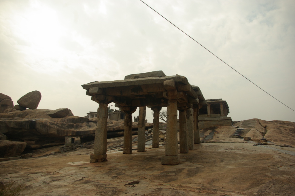 The rocky temple covered hill side of Hemakuta
