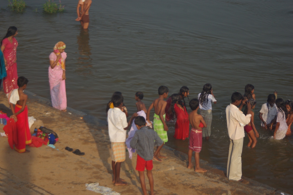 Lakshmi, the temple elephant gets a bath down by the ghats