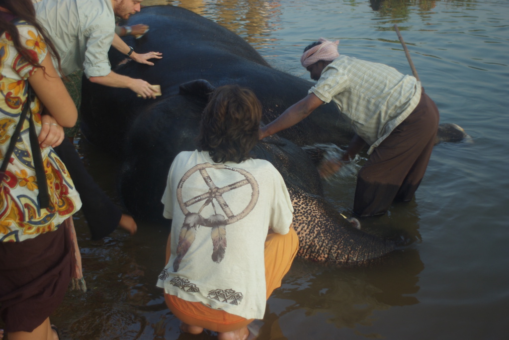 Lakshmi, the temple elephant gets a bath down by the ghats