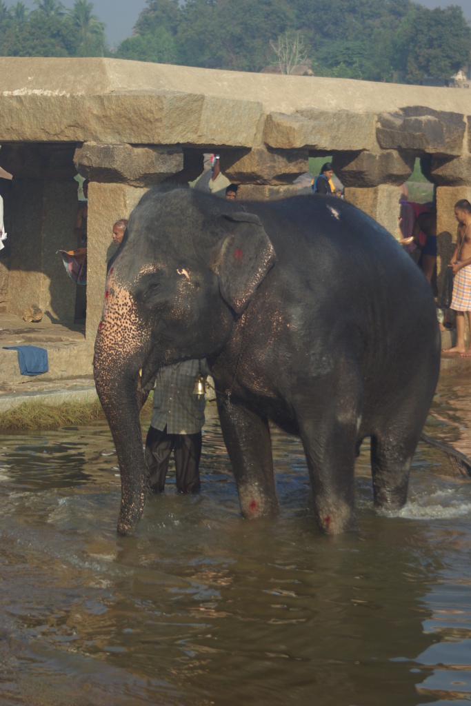 Lakshmi, the temple elephant gets a bath down by the ghats