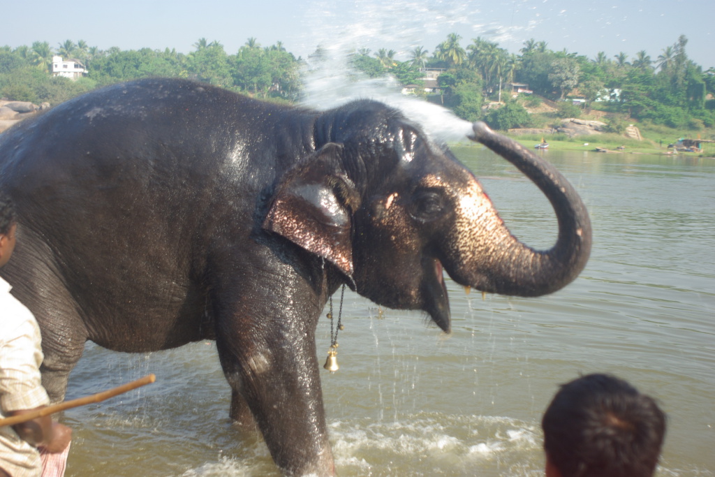 Lakshmi, the temple elephant gets a bath down by the ghats