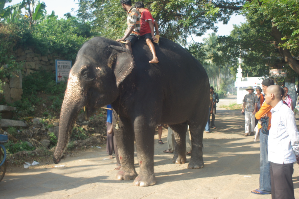 Lakshmi, the temple elephant gets a bath down by the ghats
