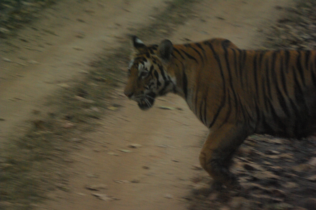 Tiger 2: A female seen in dimming light near dusk