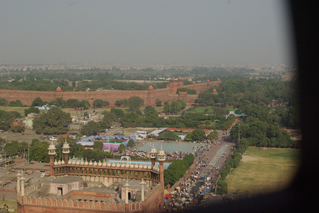 The Red Fort and the old city walls seen from Jama Masjid